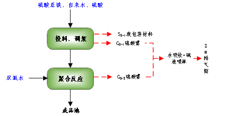 圖1-1聚合硫酸鐵生產(chǎn)工藝流程及產(chǎn)污節(jié)點圖